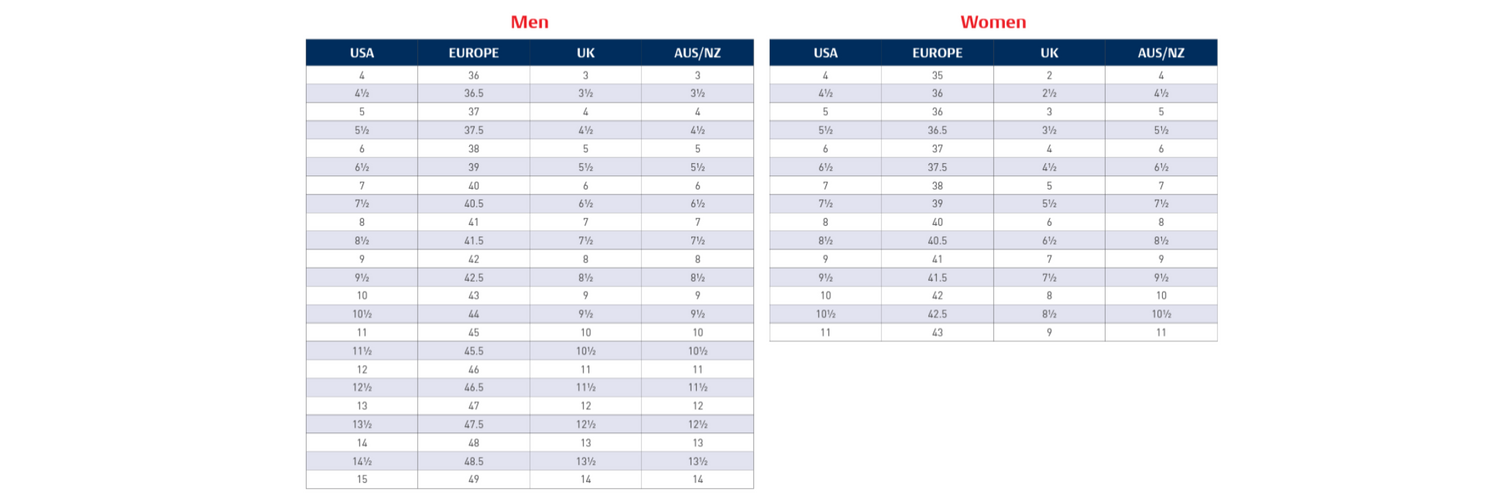 All Steel Blue boots come in a AU Men's and AU Women's size.